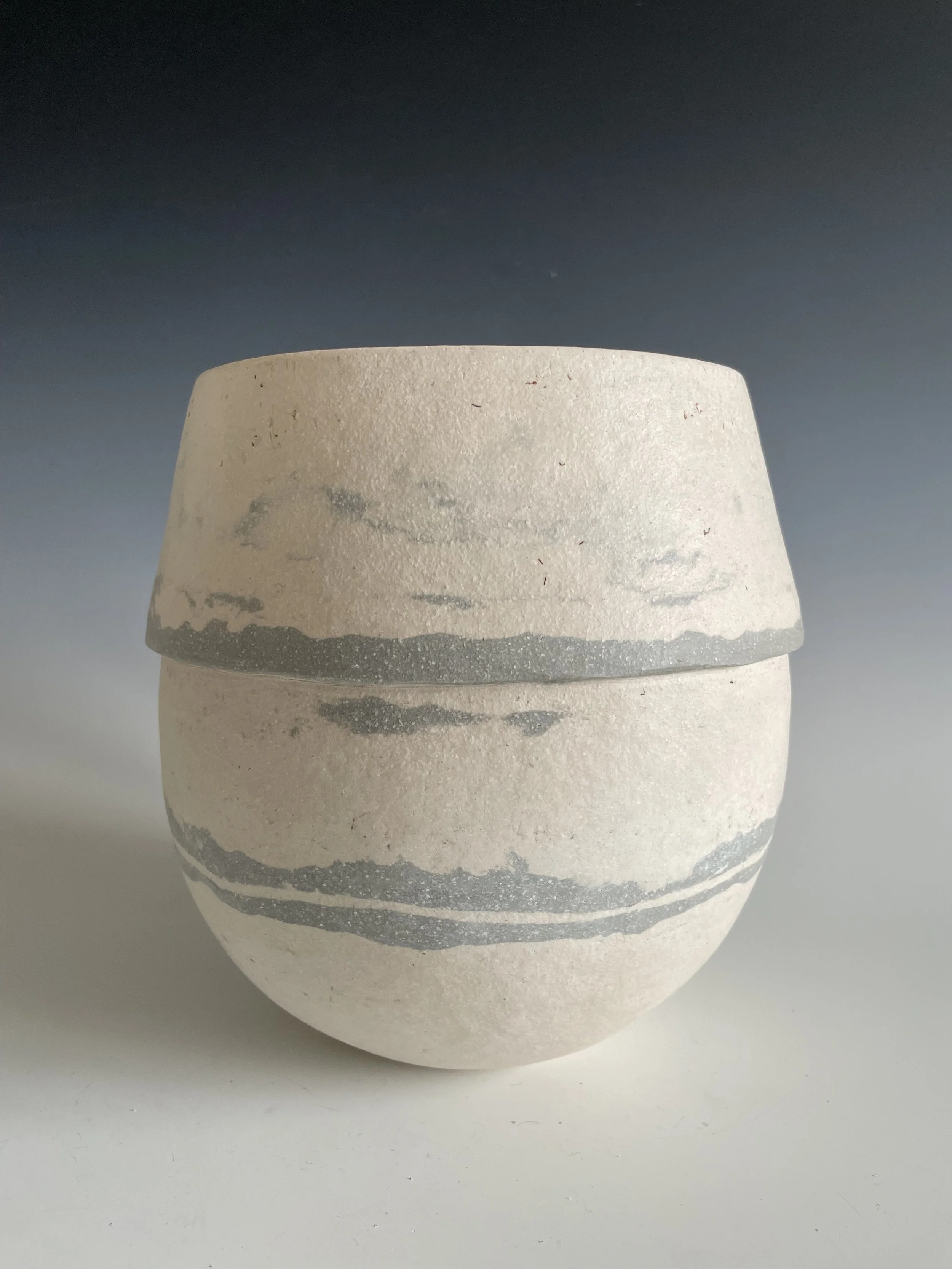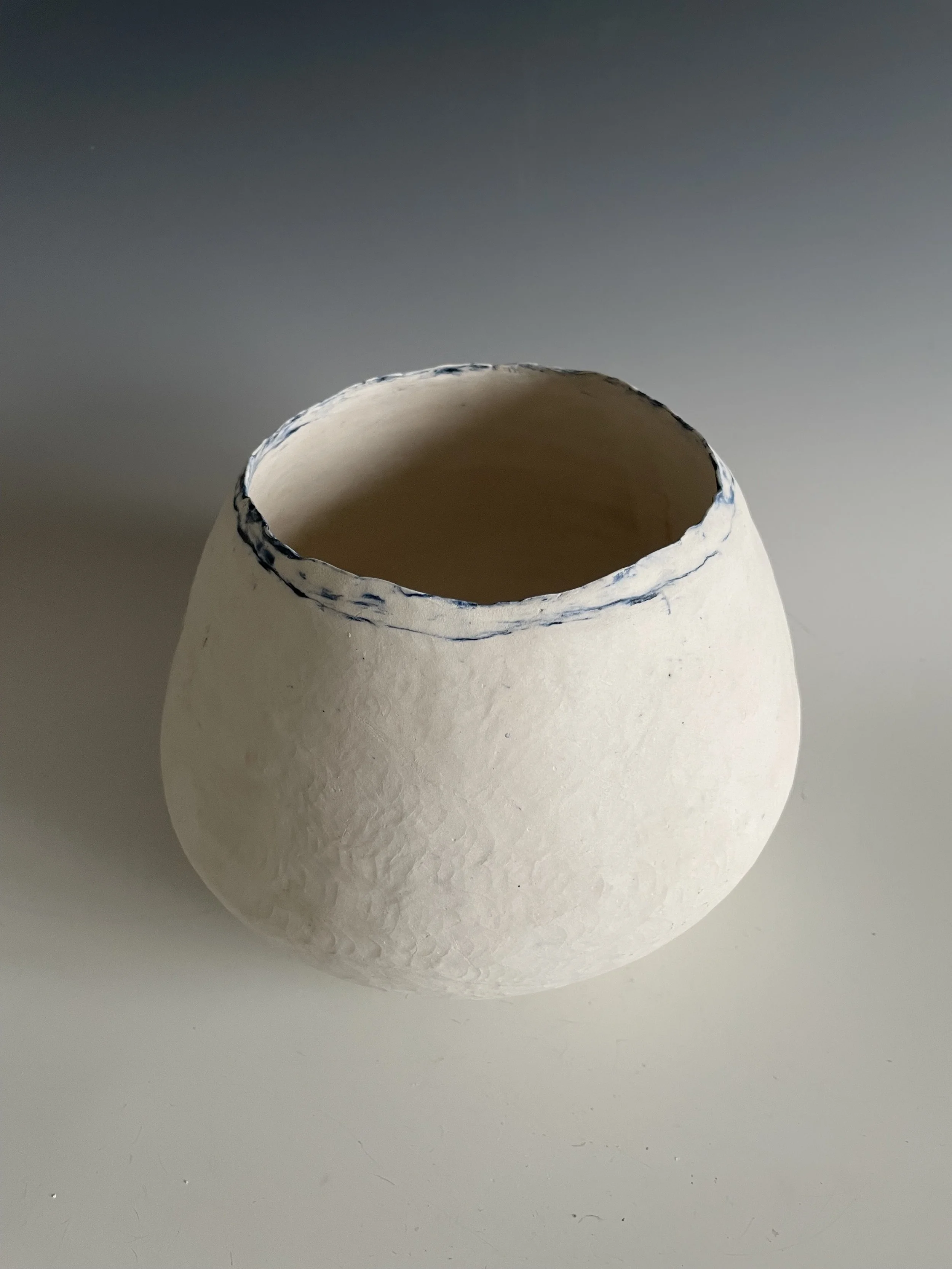 The pots are hand built from a mixture of clays and pigments; porcelain and stoneware mostly and then high fired.